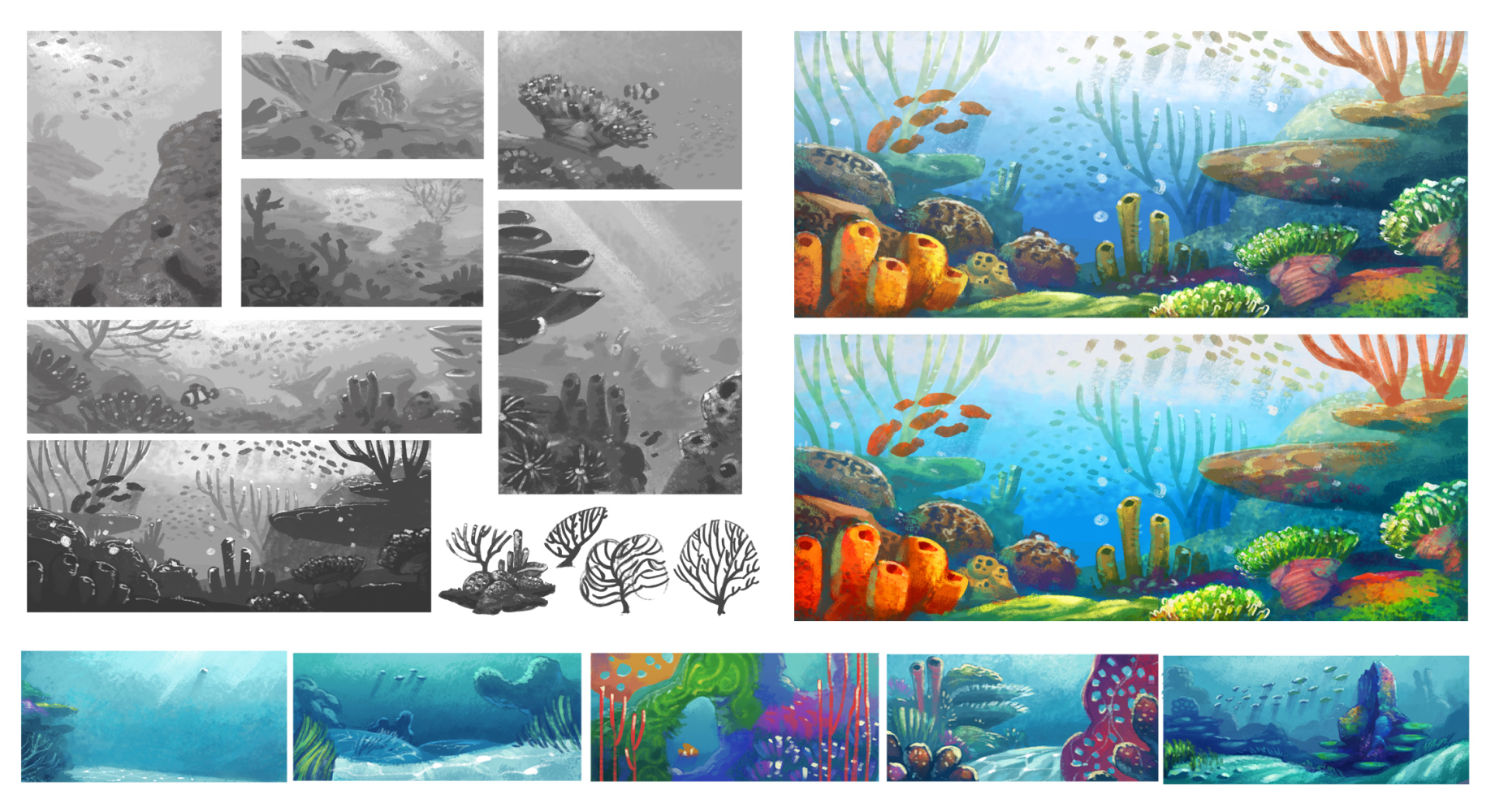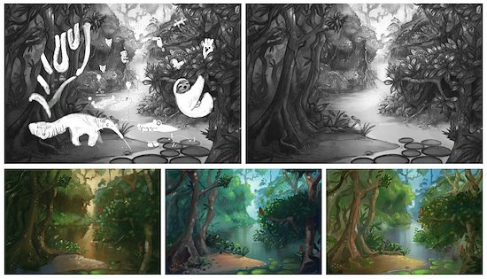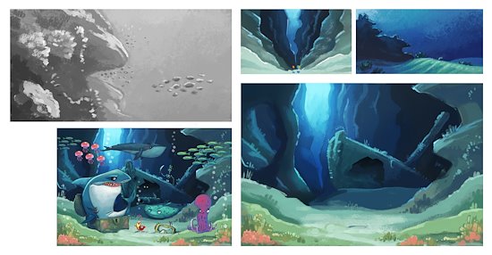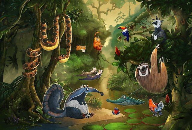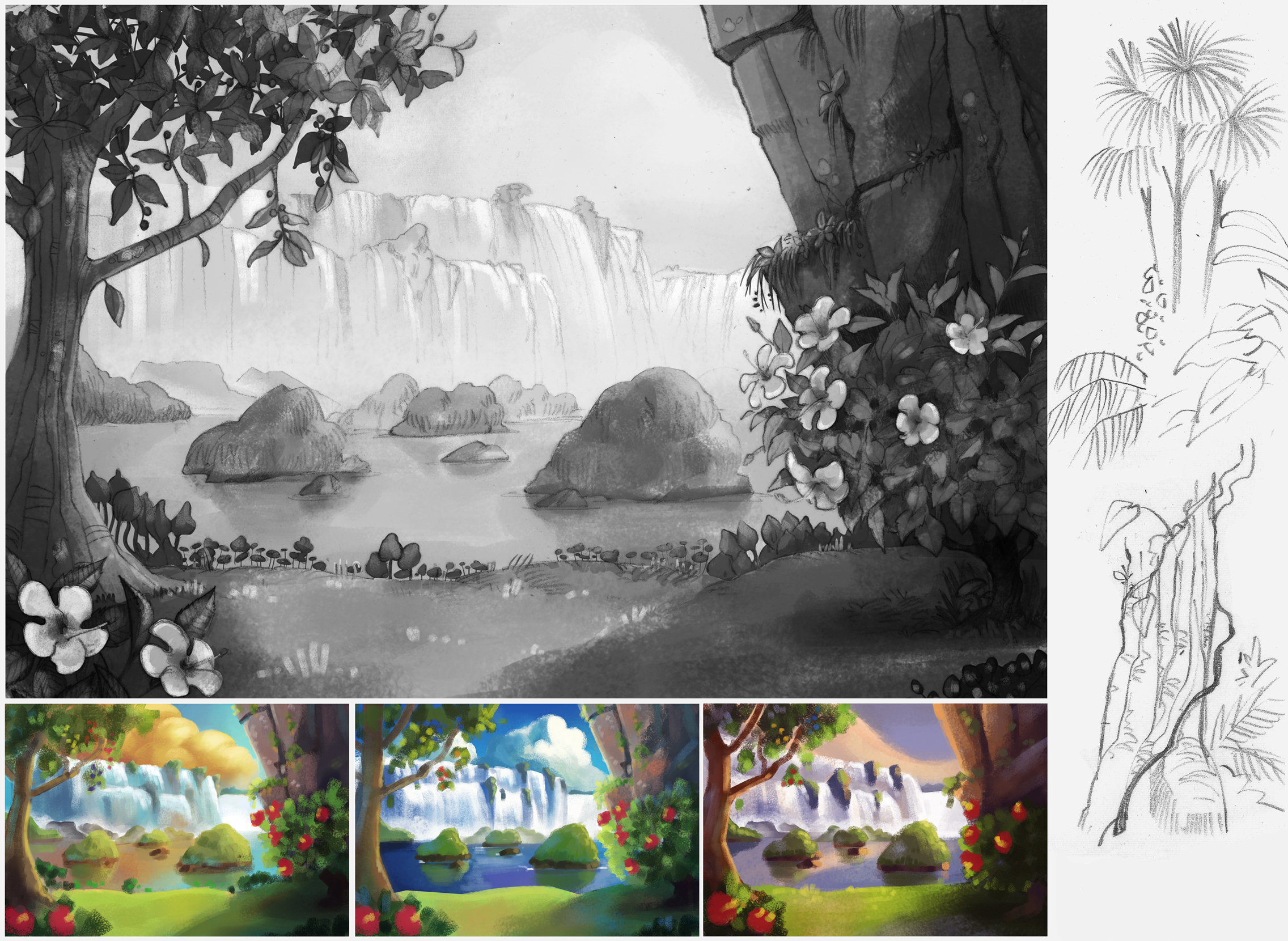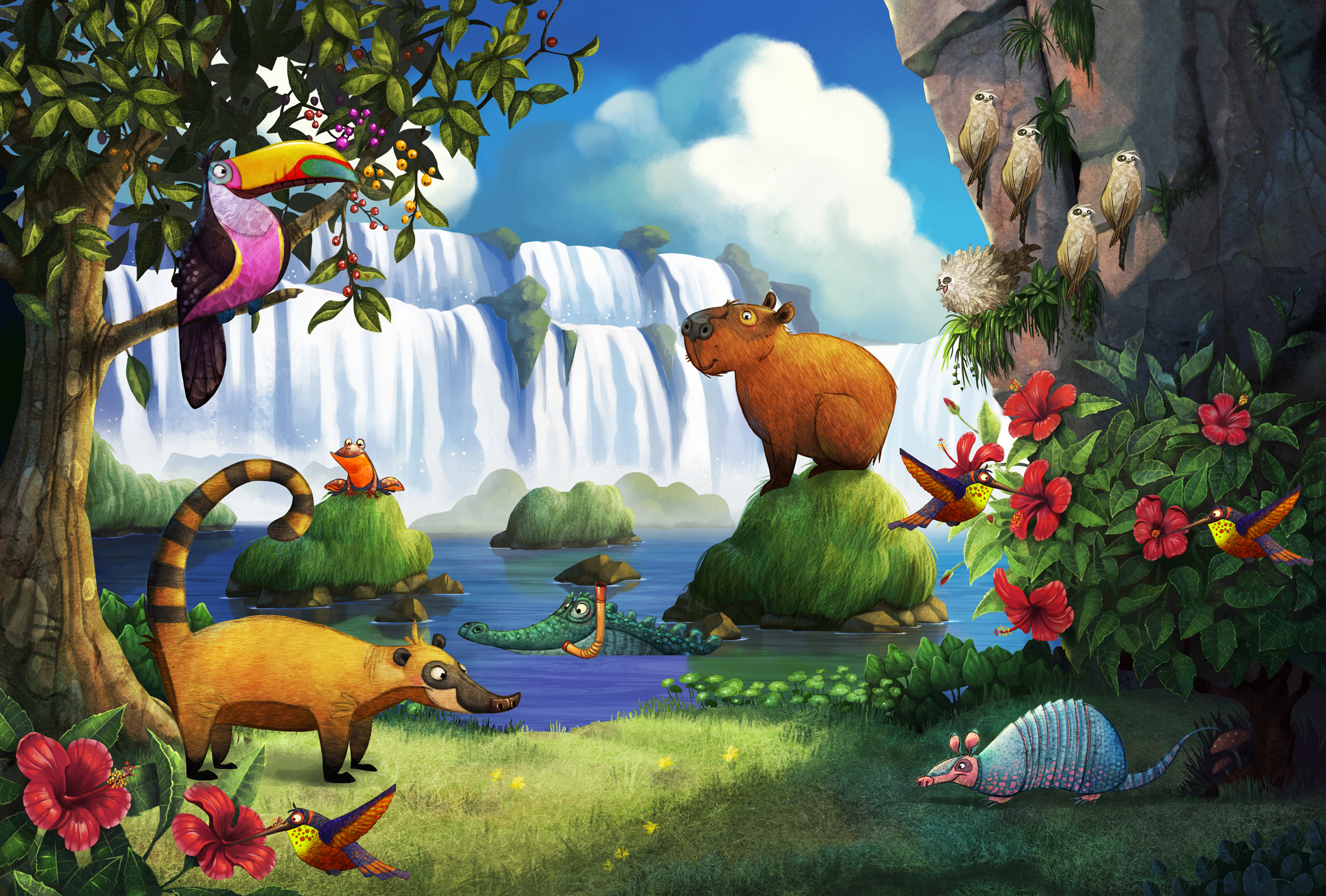 Backgrounds done for the children’s App ‘Animal Adventures’. The design of the characters is by the animator Andreas Besser.