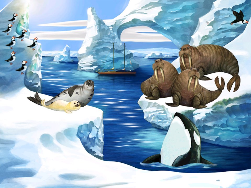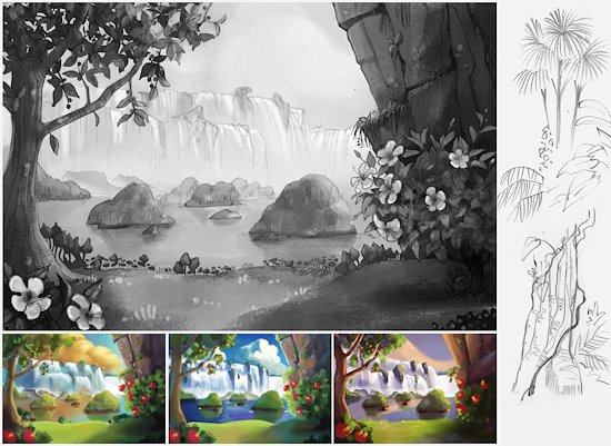 Paisatges fets per l’App infantil ‘Animal Adventures’. El dissent dels personages és del dissenyador i animador Andreas Besser.