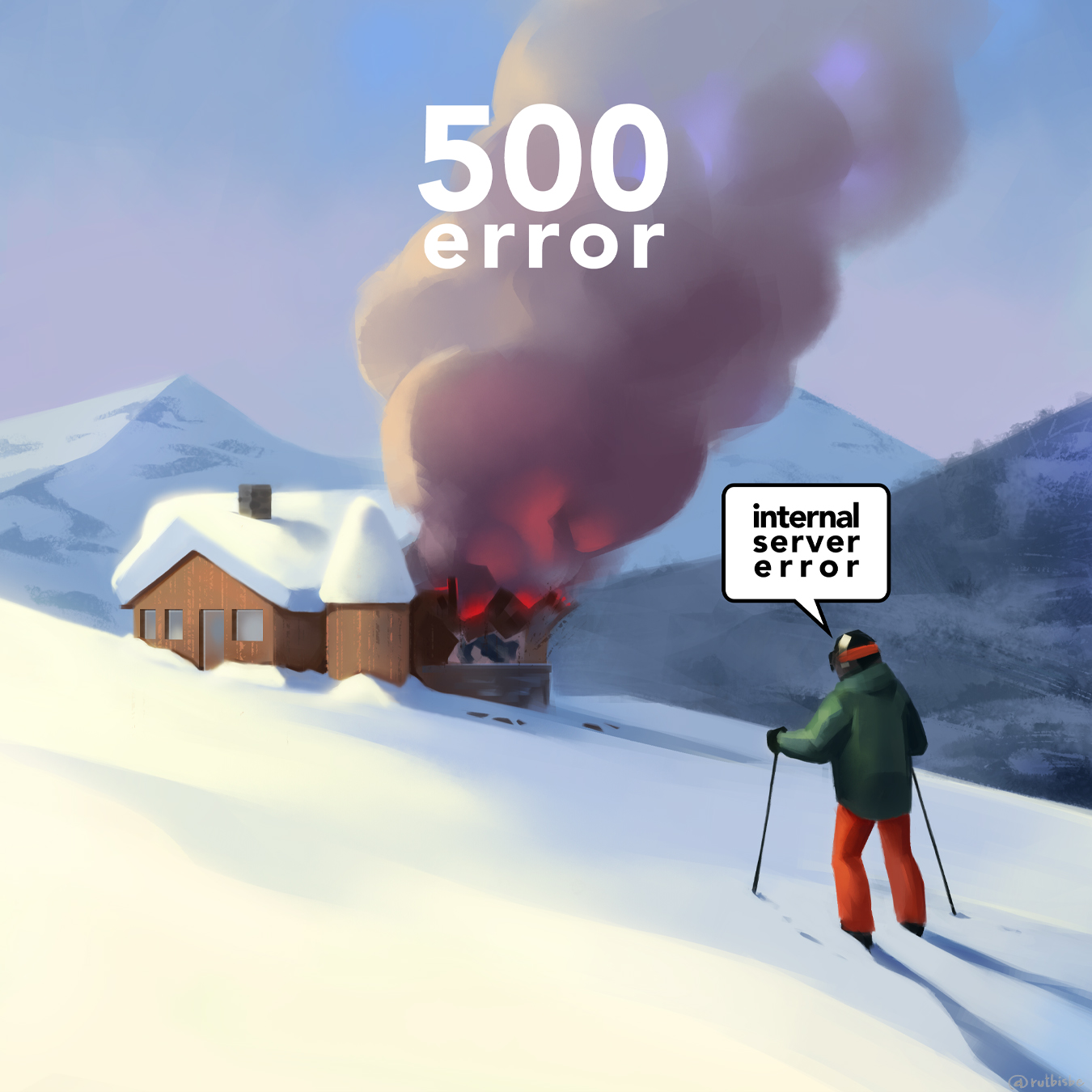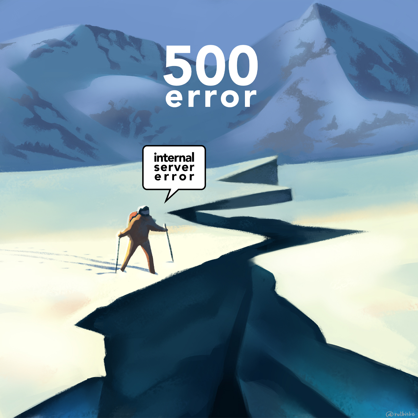 Illustrations for web errors 500 and 404, of the Pyrenees sky station Baqueira/Beret.