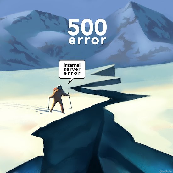 Il.lustracions fetes pels errors de web 500 i 404 de l'estació d'esquí Baqueira/Beret.