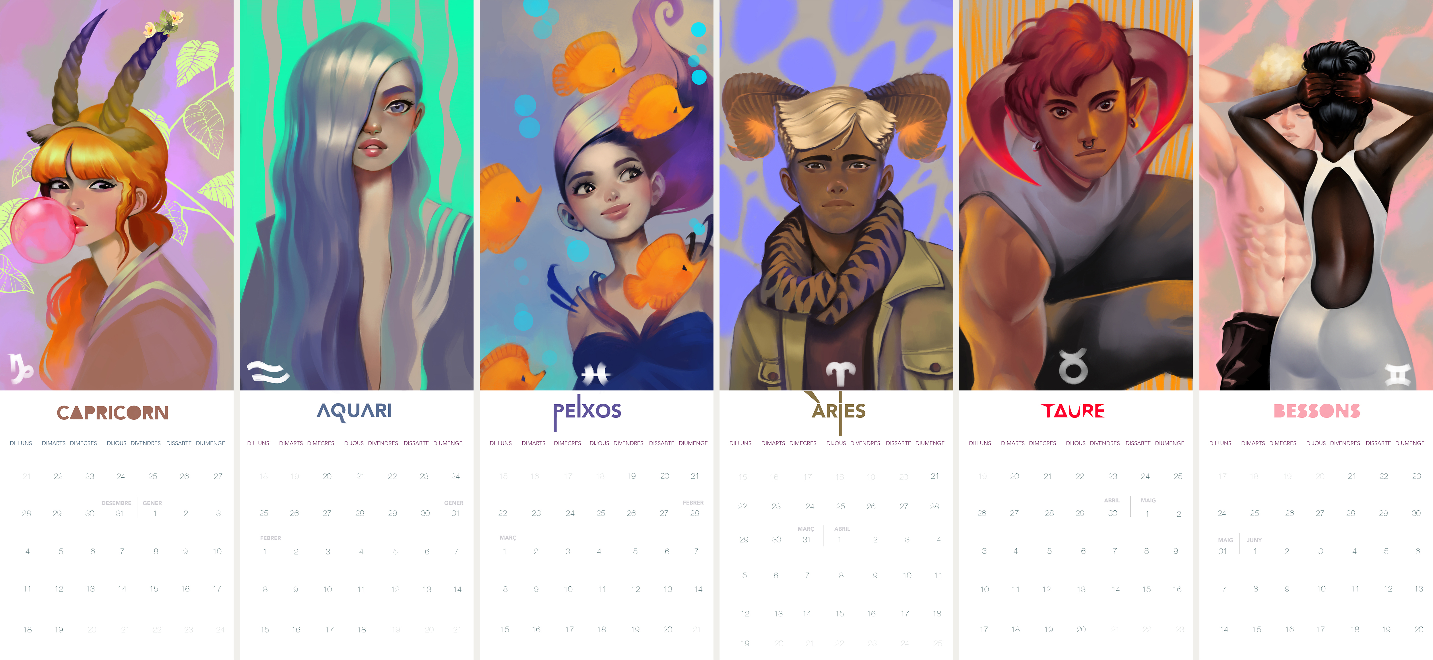 Enlloc de marcar els mesos, aquest calendari marca els signes de zodiac.